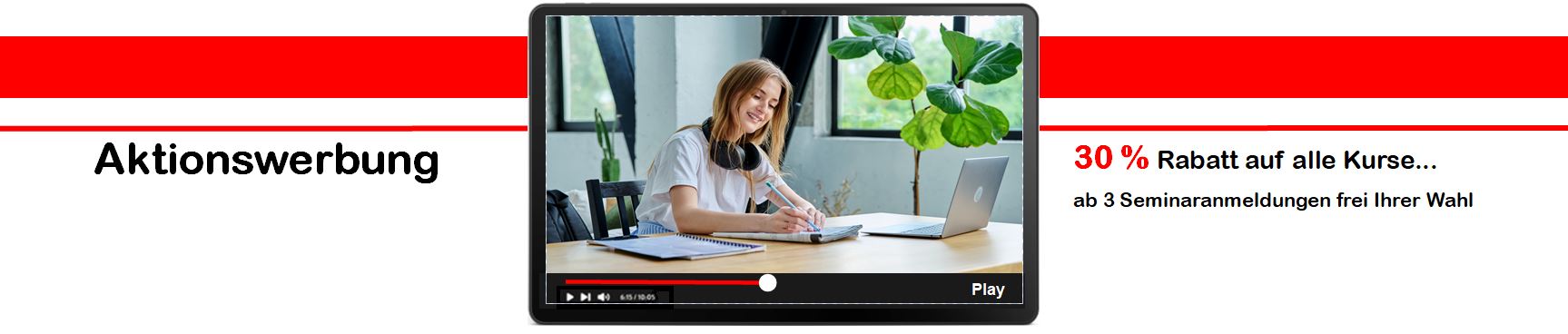 Kursgebühr: 236,00 EUR inkl. 20 % Rabatt / 295,00 EUR Standardpreis (ohne Rabatt)